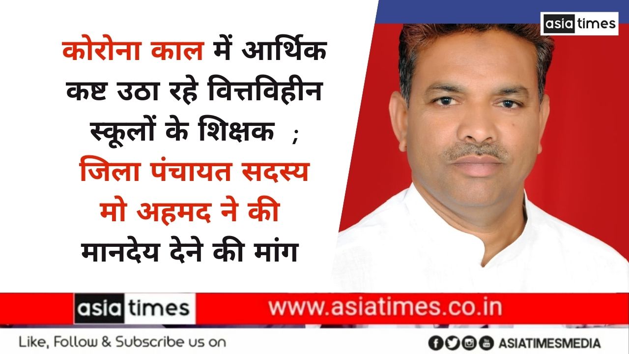कोरोना काल में आर्थिक कष्ट उठा रहे वित्तविहीन स्कूलों के शिक्षक ; जिला पंचायत सदस्य मो अहमद ने की मानदेय देने की मांग