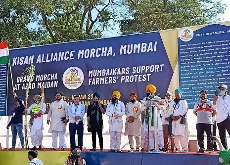 केंद्र सरकार द्वारा जबरन थोपे गए तीन कृषि कानूनों को वापस कराने के लिए जूझ रहे भारत के किसानों के समर्थन में 16 जनवरी को मुंबई के आज़ाद मैदान में करीब 10,000 लोगों ने आमद दर्ज कराई।