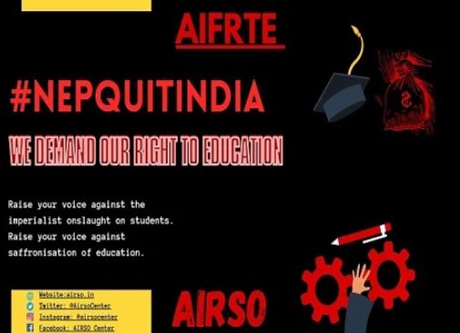 ऑल इंडिया फोरम फॉर राइट टू एजुकेशन (AIFRTE) ने मंगलवार को NEP भारत छोड़ो अभियान के पहले दिन शिक्षा के लिए अपने "असंवैधानिक" दृष्टिकोण के लिए NEP 2020 की निंदा करते हुए सरकारी अधिकारियों को एक खुला पत्र साझा किया।