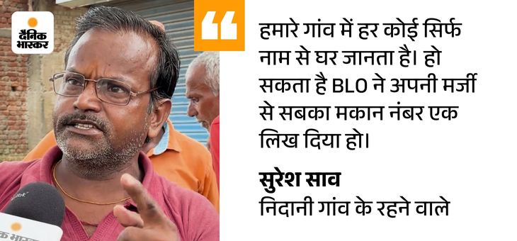 गांव के BLO अरविंद कुमार बताते हैं, ‘ये काफी पहले से चलता आ रहा है। SIR में मकान नंबर नहीं देना था। यहां पहले से सभी का मकान नंबर एक है। इसे सुधारने के लिए कई बार अफसरों से कहा, लेकिन किसी ने भी नहीं सुना।’