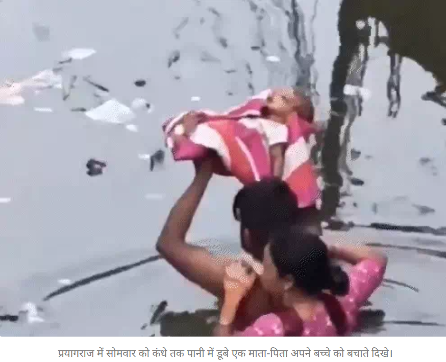 बाढ़ और बारिश के कारण काशी का महा श्मशान मणिकर्णिका घाट गंगा में डूब गया है। और लकडियां गीली हैं। इनको जलने में 5 घंटे लग रहे हैं। लोग कफन से लिपटी लाशों के बीच बैठकर अपनी बारी का इंतजार करते दिखे। आलम यह है कि एक साथ 8-10 लाशें जलाई जा रही हैं।