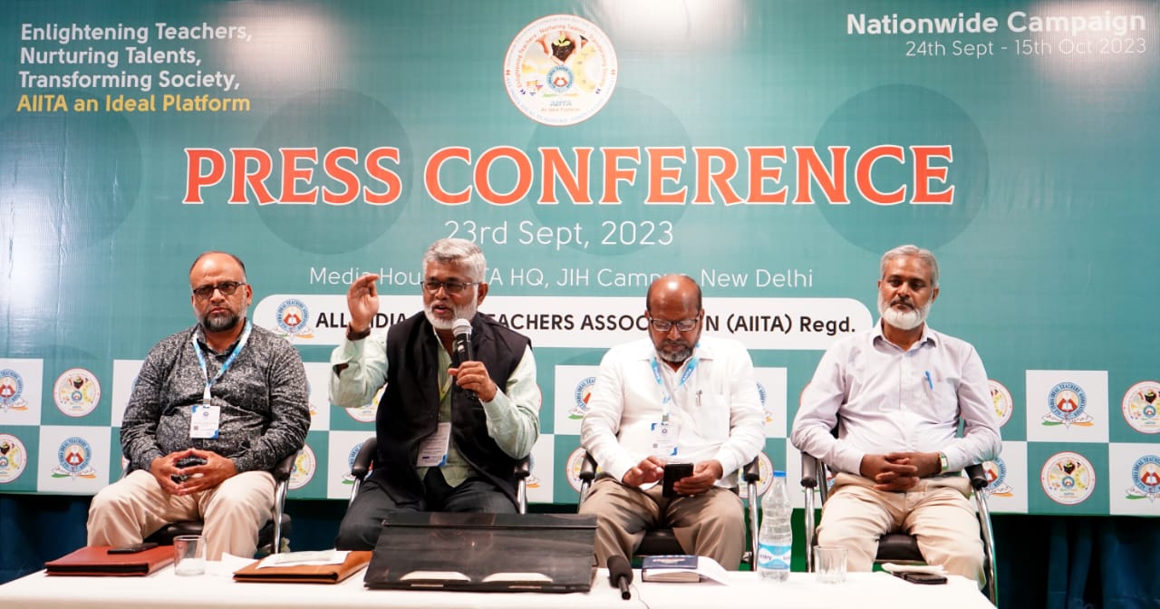 नई दिल्ली- शिक्षकों के प्रमुख संगठन ऑल इंडिया आइडियल टीचर्स एसोसिएशन ने Enlightening Teachers: Nurturing Talent : Transforming Society: AllTA an Ideal Plateform के केन्द्रीय विषय पर आयोजित देशव्यापी राष्ट्रीय शैक्षिक अभियान की शुरुआत AIITA मुख्यालय,जे०आई०एच०, नई दिल्ली के मीडिया हॉल में आयोजित प्रेस कॉन्फ्रेंस से किया। मीडिया को संबोधित करते हुए आईटा के राष्ट्रीय अध्यक्ष शेख अब्दुल रहीम साहब ने बताया कि आईटा शिक्षकों का एक राष्ट्रव्यापी पंजीकृत संगठन है जिसकी स्थापना सन् 1992 में हुई।
