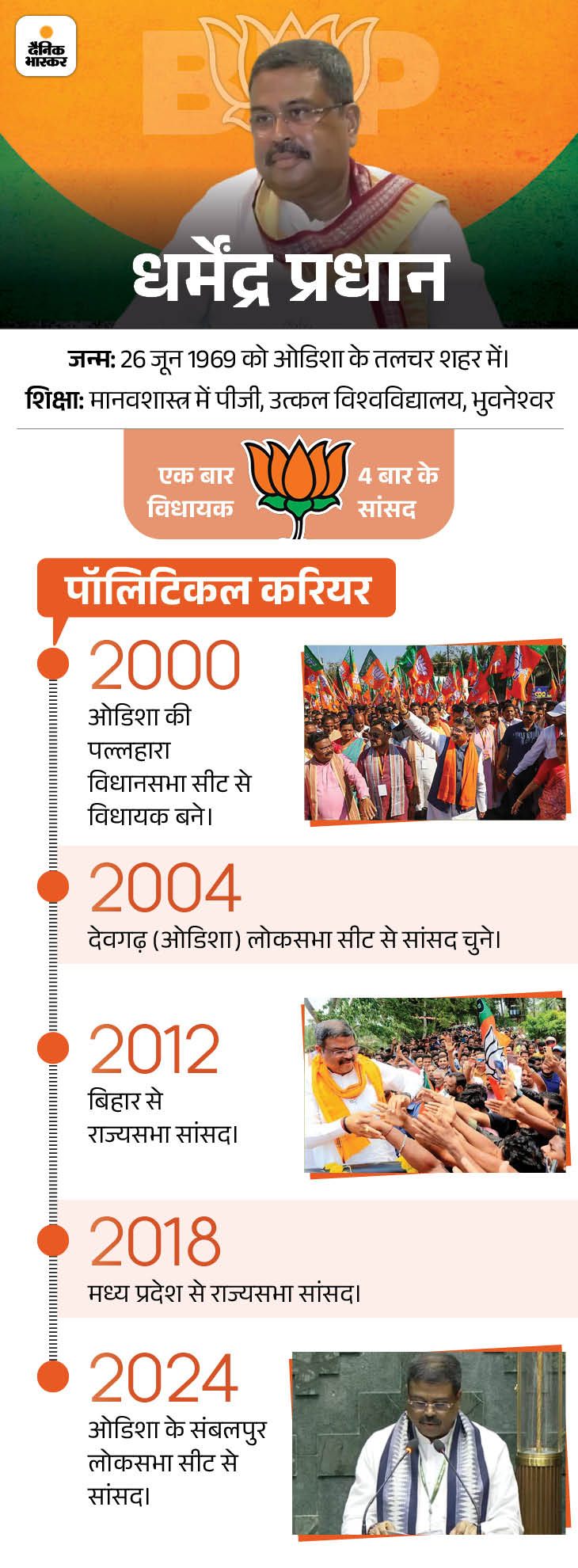 - धर्मेंद्र प्रधान को संगठनात्मक और चुनावी मैनेजमेंट का अनुभव: वर्तमान में केंद्रीय शिक्षा मंत्री और भाजपा के एक अनुभवी संगठनकर्ता हैं। मोदी और शाह की टीम के भरोसेमंद सदस्य हैं। लोकसभा समेत ओडिशा, उत्तर प्रदेश, उत्तराखंड, कर्नाटक में संगठनात्मक मजबूती और उम्मीदवारों के बीच तालमेल बैठाने में अहम भूमिका निभाई है। सभी चुनाव में पार्टी की जीत हुई। बिहार जैसे जटिल जातीय समीकरण वाले राज्य में उनकी संगठन क्षमता और चुनाव प्रबंधन का अनुभव पार्टी के लिए फायदेमंद हो सकता है।