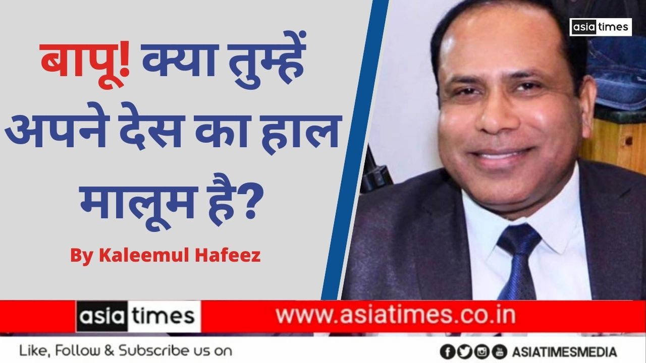 ये ऊँची जाति के लोग दलितों के साथ बहुत बुरा सुलूक कर रहे हैं।बापू! तुम्हें मालूम है, हमारी नई सरकार जो भी क़ानून बनाती है। वो कुछ पूँजीपतियों को फ़ायदा पहुँचाने वाला होता है या देश के रहने वालों के ख़िलाफ़ होता है। जन्नत जैसे कश्मीर के तीन हिस्से कर दिये, NRC के नाम पर देशवासियों को ही बाहरी बताने लगे, किसान बिल के ज़रिए किसानों को कम्पनियों का ग़ुलाम बनाने का प्रोग्राम है। बापू देस का बहुत बुरा हाल है। महँगाई आसमान छू रही है। बेरोज़गारी बढ़ रही है, किसान ख़ुदकुशियाँ कर रहे हैं, औरतें अपनी इज़्ज़त बचाने में नाकाम हैं, धर्म और जाति का भेद पैदा किया जा रहा है, आदमी ही आदमी से डर रहा है। राजा अपनी प्रजा में भेद कर रहा है। धर्म के नाम पर लड़ाया जा रहा है, मुसलमानों को तो देश का दुश्मन साबित करने पर सारा ज़ोर लगाया जा रहा है। इन्साफ़ अन्धा हो गया है। तुम्हारे सत्य, अहिंसा और उदारता को तो कोई पूछने वाला ही नहीं रहा।