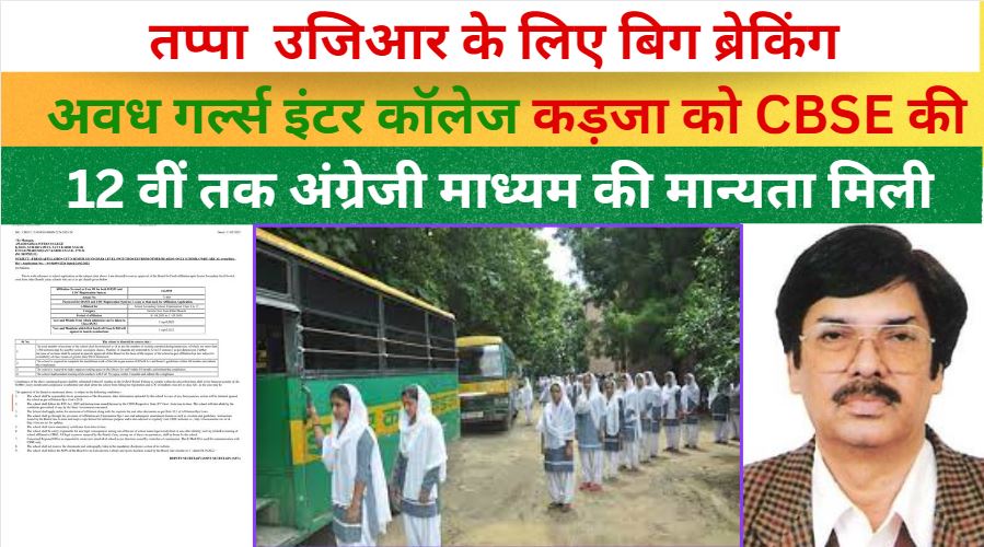 तप्पा उजिआर के लिए बिग ब्रेकिंग :अवध गर्ल्स इंटर कॉलेज कड़जा को CBSE की 12 वीं तक अंग्रेजी माध्यम की मान्यता मिली