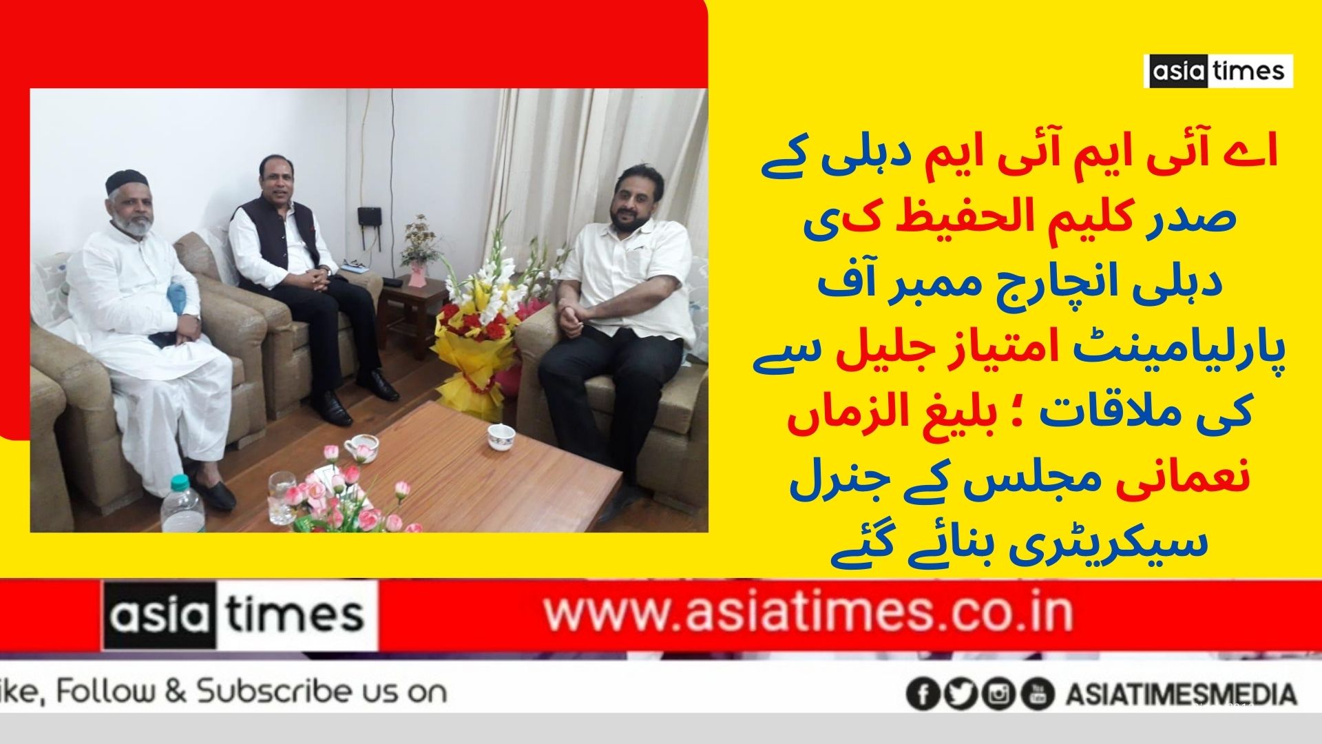 اے آئی ایم آئی ایم دہلی کے صدر کلیم الحفیظ کی دہلی انچارج ممبر آف پارلیامینٹ امتیاز جلیل سے کی ملاقات ؛ بلیغ الزماں نعمانی مجلس کے جنرل سیکریٹری بنائے گئے