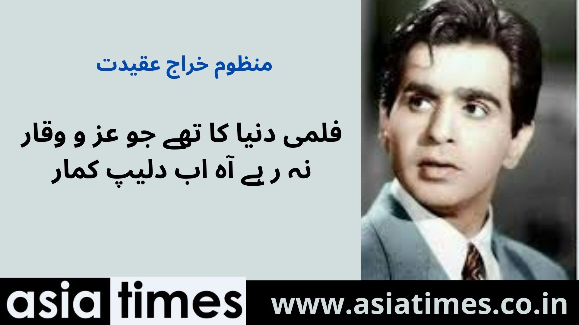 شہرۂ آفاق فلمی اداکارشہنشاہ جذبات دلیپ کمار کے سانحۂ ارتحال پر منظوم خراج عقیدت
