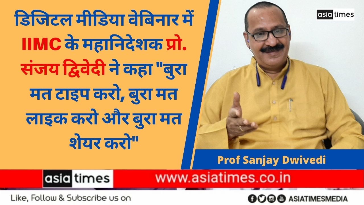 डिजिटल मीडिया वेबिनार में IIMC के महानिदेशक प्रो. संजय द्विवेदी ने कहा "बुरा मत टाइप करो, बुरा मत लाइक करो और बुरा मत शेयर करो"