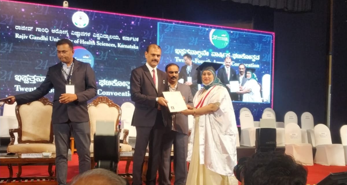 डॉ अमीना यास्मीन को राजीव गांधी इंस्टीट्यूट ऑफ हेल्थ एंड साइंस ,जयनगर,कर्नाटक के 24 वें कन्वोकेशन में डॉक्टर ऑफ फिलॉसफी की डिग्री से नवाजा गया है।डॉ अमीना ने यूनानी सिस्टम ऑफ मेडिसिन में पीएचडी कर नया कीर्तिमान बनाया है साथ ही यूनानी सिस्टम ऑफ मेडिसिन अंतर्गत फॉर्मोकोलॉजी में पीएचडी करने वाली कर्नाटक और भारत की पहली महिला होने का गौरव भी हासिल किया है।