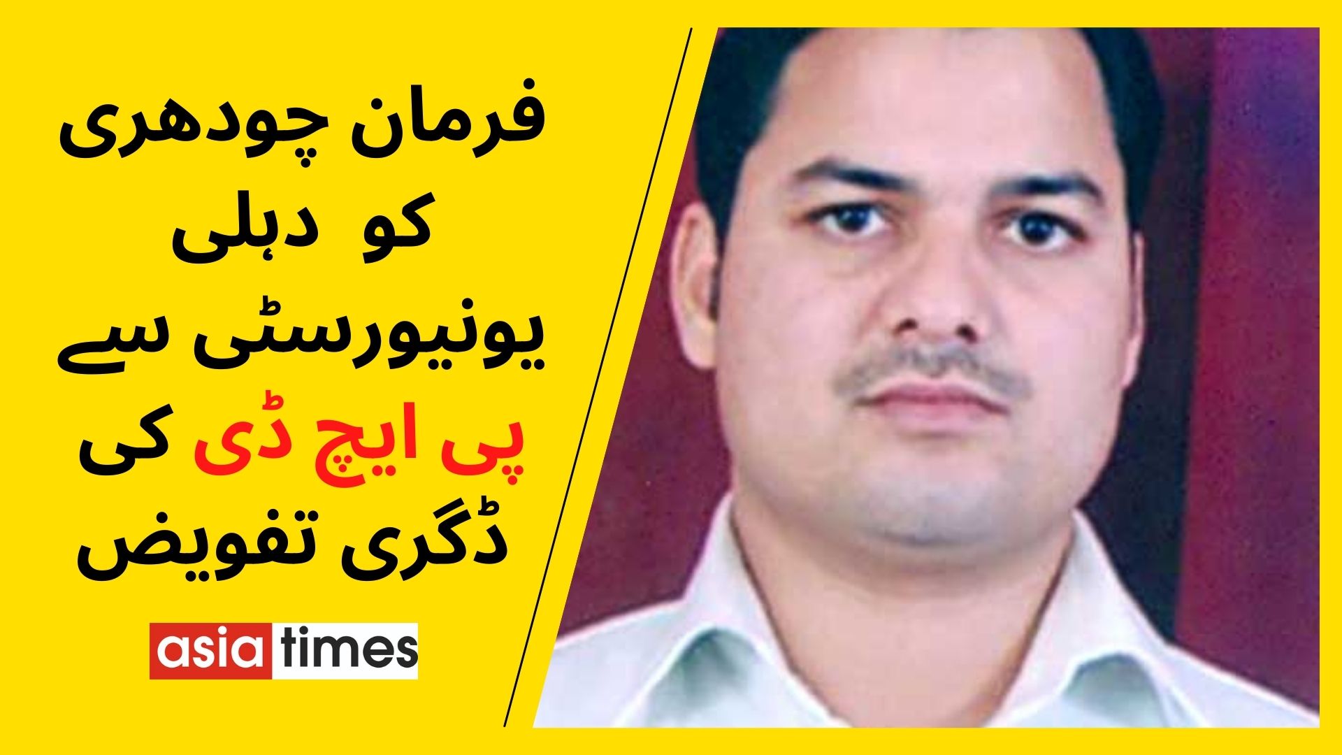 فرمان چودھری کو دہلی یونیورسٹی سے پی ایچ ڈی کی ڈگری تفویض