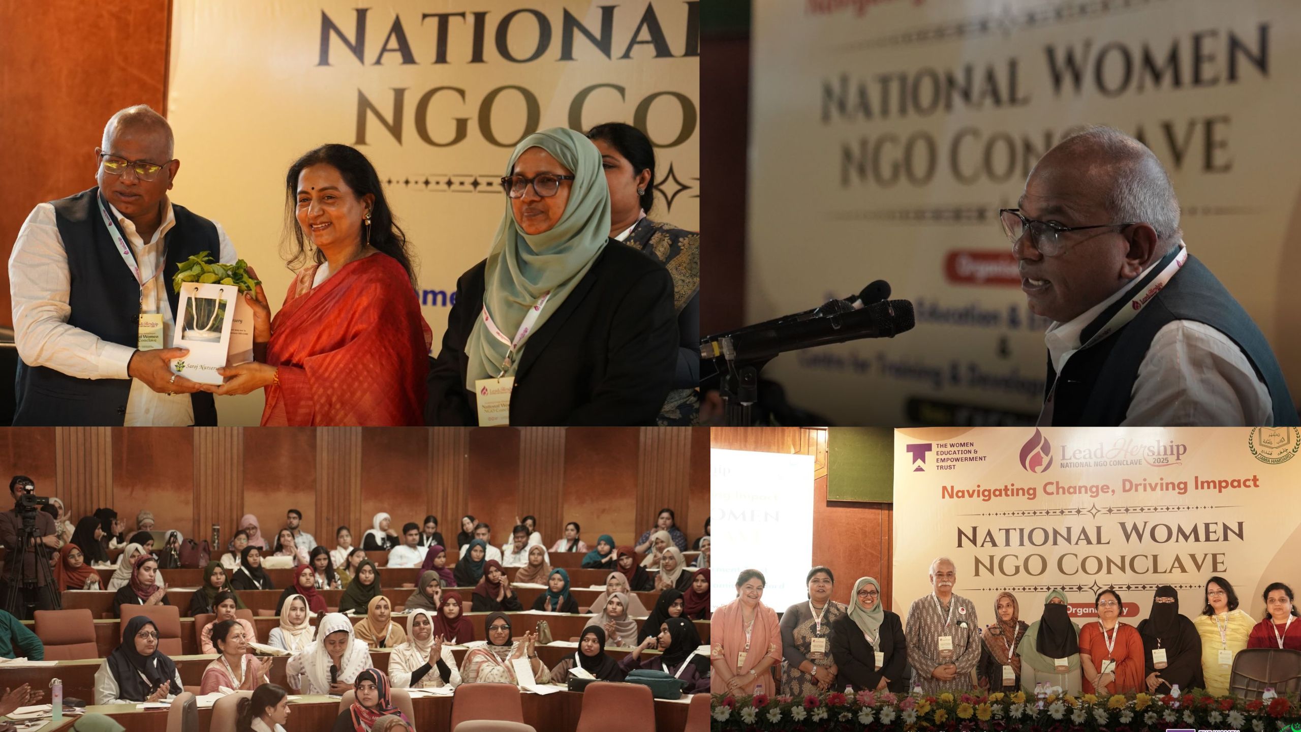 پروفیسر ڈاکٹر ایم. افشار عالم، وائس چانسلر، جامعہ ہمدرد نے صدارتی خطاب میں خواتین کی زیر قیادت این جی اوز کو روایتی حدود سے آگے بڑھ کر پائیدار حل تلاش کرنے کی اپیل کی۔ انہوں نے کہا ہمیں ایک نئے ہندوستان کی تعمیر کرنی ہے جہاں ہر عورت خود مختار ہو۔ انہوں نے مزید کہا کہ دراصل " ناری شکتی سَمان ہی راشٹر کا سَمان ہے " ۔