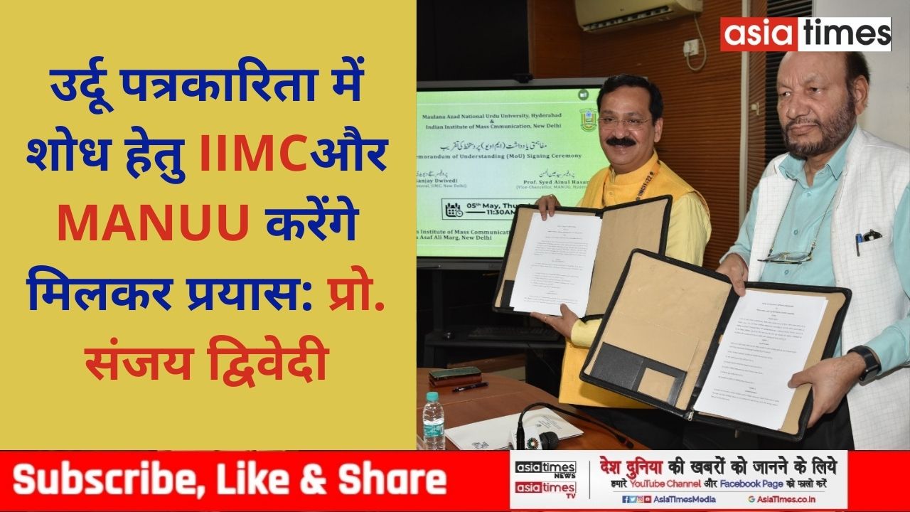 नई दिल्ली, 5 मई। भारतीय जन संचार संस्थान (IIMC) और हैदराबाद स्थित मौलाना आज़ाद राष्ट्रीय उर्दू विश्वविद्यालय (MANUU) के बीच गुरुवार को ज्ञान, संसाधन और अनुसंधान गतिविधियों को साझा करने के लिए समझौता पत्र (MoU) पर हस्ताक्षर हुए। MoU पर आईआईएमसी की ओर से महानिदेशक प्रो. संजय द्विवेदी और एमएएनयूयू की ओर से कुलपति प्रो. सैयद ऐनुल हसन ने हस्ताक्षर किए।यह समझौता तीन वर्ष के लिए किया गया है।