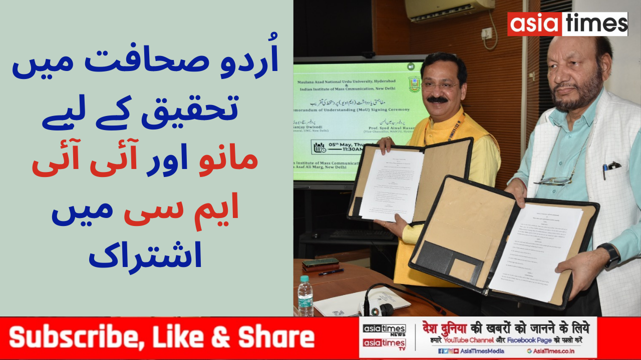 حیدرآباد، 5 مئی : مولانا آزاد نیشنل اُردو یونیورسٹی اور صحافت کی تعلیم کے باوقار ادارہ انڈین انسٹی ٹیوٹ آف ماس کمیونیکیشن، نئی دہلی نے صحافت میں تحصیلِ علم، تعلیمی وسائل اور تحقیقی سرگرمیوں میں اشتراک کے لیے یادداشت مفاہمت کی ہے۔