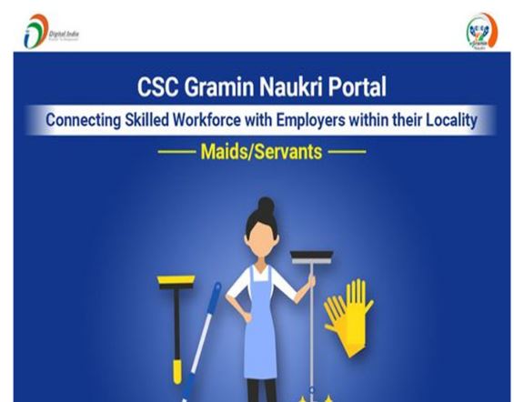 सीएससी ग्रामीण नौकरी पोर्टल अपने इलाके के भीतर नियोक्ताओं के साथ कुशल कार्यबल को जोड़ रहा है। "नौकरानियों व नौकरों" के लिए दिए गए लिंक पर जाकर अभी पंजीकरण करें: https://cscgraminnaukri.in/ या हमें skills@cs.gov.in पर ई-मेल करें ।