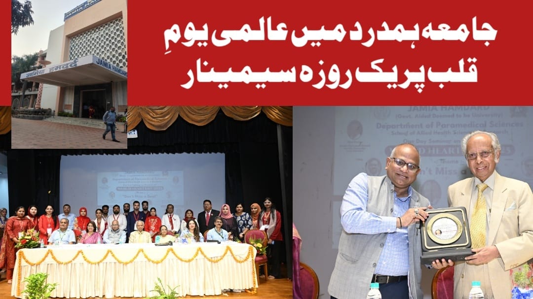 نئی دہلی : جامعہ ہمدرد کے شعبہ پیرامیڈیکل سائنسز، اسکول آف الائیڈ ہیلتھ سائنسز اینڈ ریسرچ کی جانب سے عالمی یومِ قلب (World Heart Day 2025) کے موقع پر 29 ستمبر کو یک روزہ سیمینار کا انعقاد کیا گیا۔ اس برس کا عالمی تھیم “Don’t Miss a Beat” رہا جس کا مقصد قلبی صحت کے بارے میں آگاہی پیدا کرنا اور احتیاطی تدابیر اپنانے کی ضرورت کو اجاگر کرنا تھا۔ سیمینار میں ملک کے معروف ماہر امراضِ قلب اور پدم بھوشن ایوارڈ یافتہ پروفیسر (ڈاکٹر) ایم خلیل اللہ نے بحیثیت مہمانِ خصوصی شرکت کی۔ اپنے خطاب میں انہوں نے ہندوستان میں بڑھتے ہوئے قلبی امراض پر تشویش ظاہر کی اور کہا کہ طرزِ زندگی میں بہتری، بروقت تشخیص اور کمیونٹی کی سطح پر احتیاطی اقدامات ہی اس چیلنج سے نمٹنے کا مؤثر ذریعہ ہیں۔