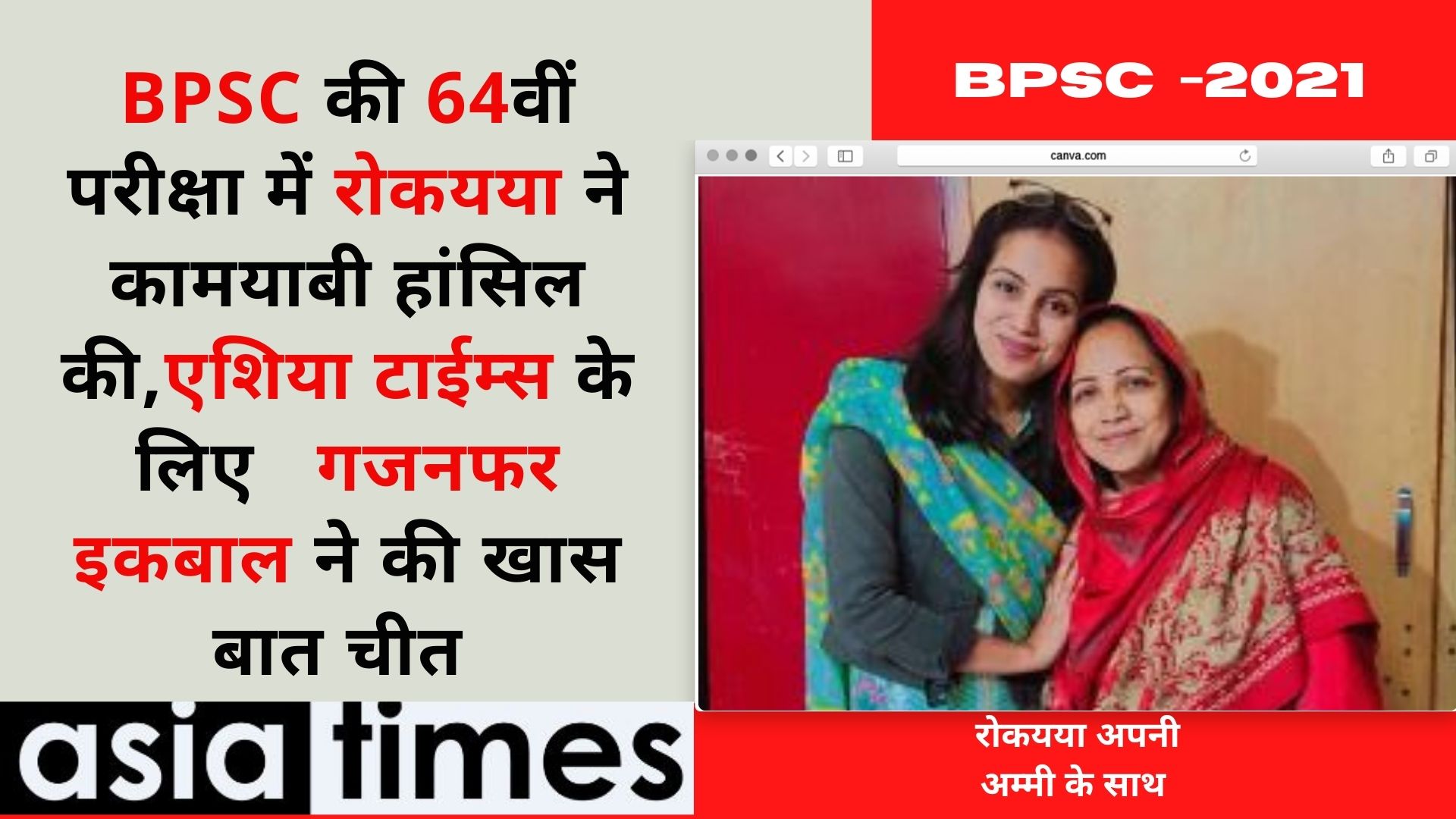 BPSC की 64वीं परीक्षा में रोकयया ने कामयाबी हांसिल की,एशिया टाईम्स के लिये गजनफर इकबाल ने उनसे खास बात चीत की
