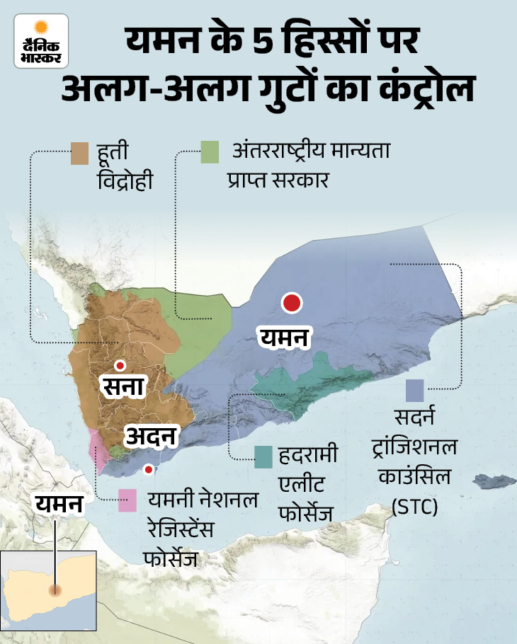 4. सदर्न ट्रांजिशनल काउंसिल- यह संगठन दक्षिणी यमन की आजादी की मांग करता है। इसे UAE का समर्थन मिलता है।