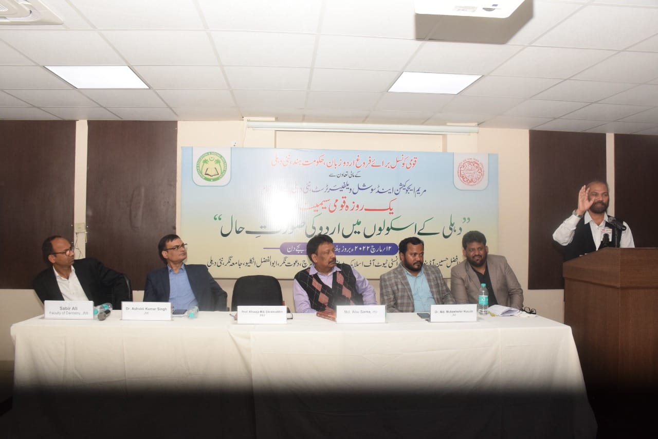 ان خیالات کا اظہار جواہر لال نہرو یونیورسٹی کے پروفیسر خواجہ اکرام الدین نے مریم ایجوکیشنل اینڈ ویلفیر ٹرسٹ کے زیر اہتمام "دہلی کے اسکولوں میں اردو کی صورت حال " کے موضع پر منعقد سمینار میں کیا، پروفیسر خواجہ اکرام نے پروگرام کی صدارت کی ۔