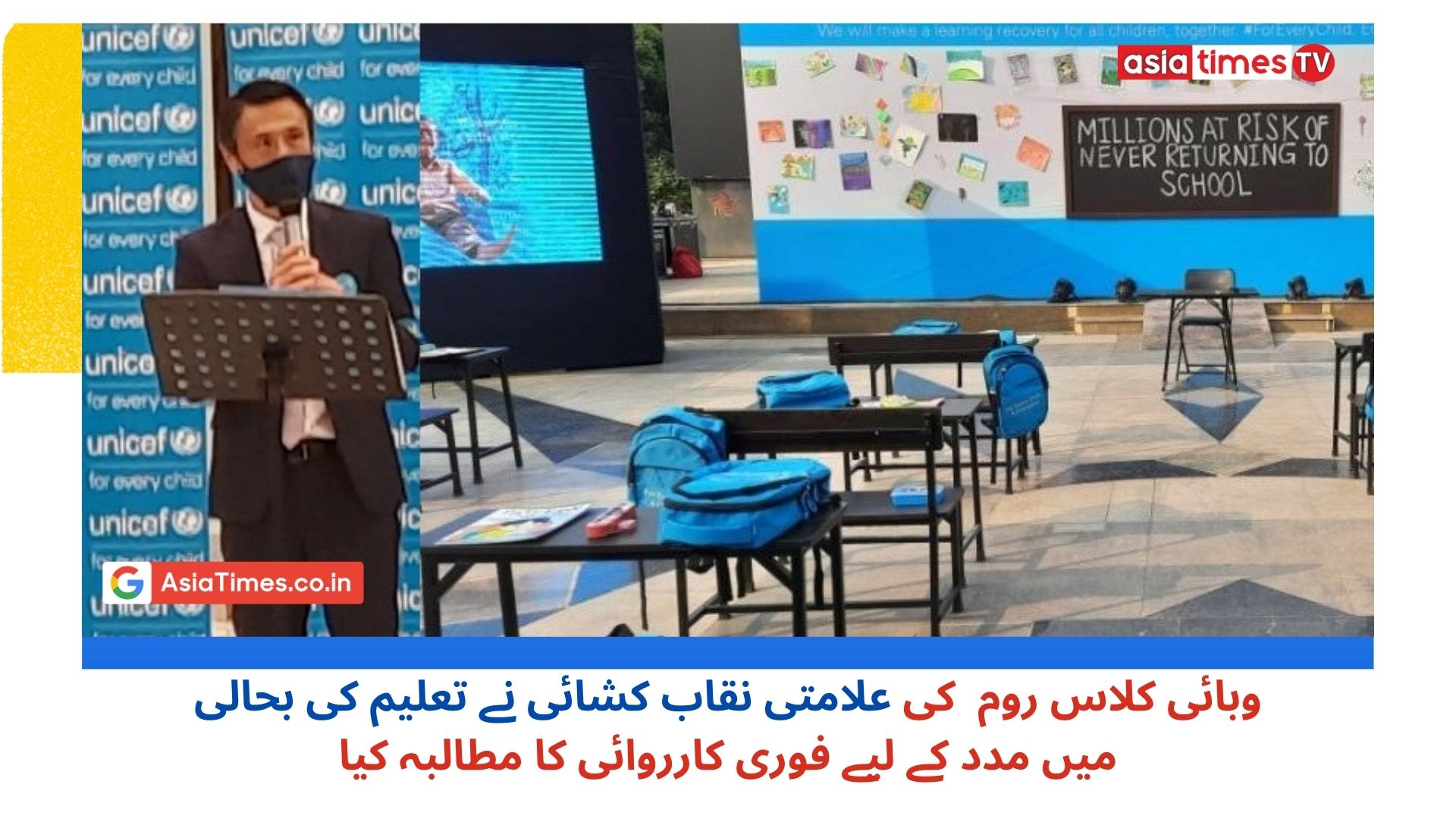 وبائی کلاس روم کی علامتی نقاب کشائی نے تعلیم کی بحالی میں مدد کے لیے فوری کارروائی کا مطالبہ کیا