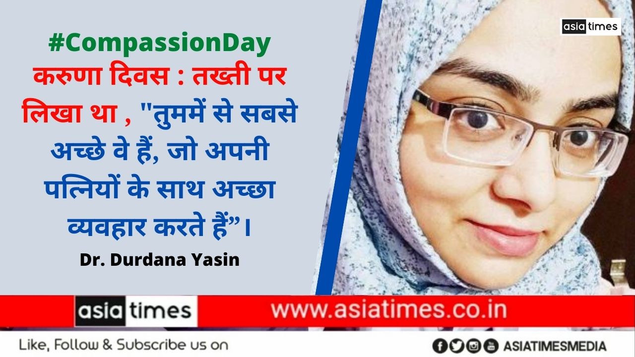 करुणा दिवस : तख्ती पर लिखा था : ,"तुममें से सबसे अच्छे वे हैं, जो अपनी पत्नियों के साथ अच्छा व्यवहार करते हैं”।