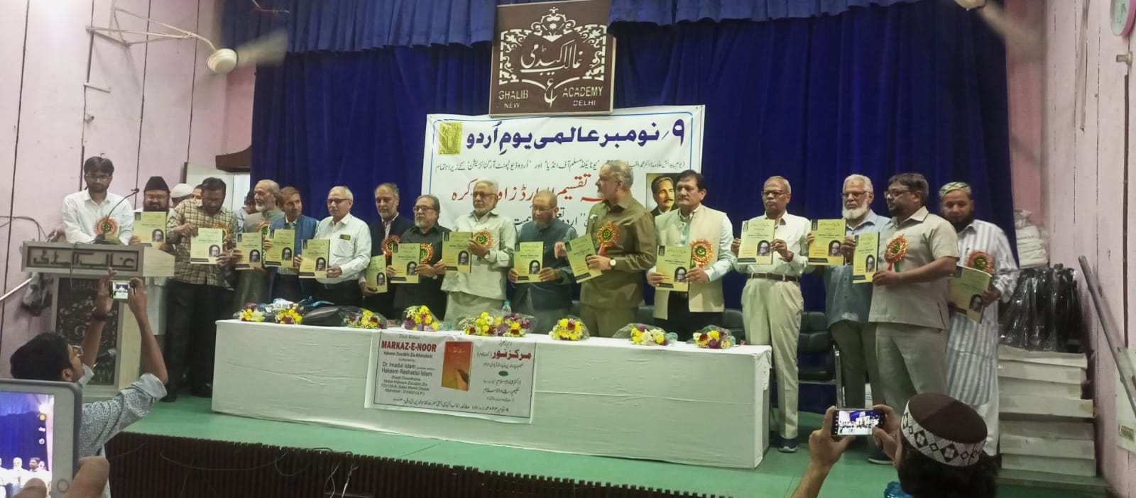 پروگرام کو کامیاب بنانے والوں میں ڈاکٹر ذکی الدین، ڈاکٹر شکیل احمد، ڈاکٹر غیاث الدین صدیقی، محمدتسلیم ، ماسٹر ارشد چودھری ،ڈاکٹر اطہر محمود، ڈاکٹر فہیم ملک، ڈاکٹر شکیل احمد ہاپوڑی، حکیم محمد مرتضیٰ دہلوی، حکیم آفتاب عالم خان، ندیم عارف ،محمد عمران قنوجی، محمد صادق ، شاذان کے نام قابل ذکر ہیں ۔ ایوارڈ یافتگان، عالمی یوم اردو، 9 نومبر 2024میںمحمد خلیل کو پروفیسر محمد شفیع علیگ عالمی یوم اردو لائف ٹائم اچیومنٹ ایوارڈ،پروفیسر ڈاکٹر علی احمد ادریسی کو علامہ اقبال عالمی یوم اردو ایوارڈ برائے ادب، انجم نعیم کو مولوی محمد باقر عالمی یوم اردو ایوارڈ برائے صحافت،مولانا عبدالغفار صدیقی عرف دانش نورپوری کو حفیظ میرٹھی عالمی یوم اردو ایوارڈ برائے شاعری،جناب شاہدالاسلام (دہلی) کو محفوظ الرحمن عالمی یوم اردو ایوارڈ برائے صحافت، جناب صغیر احمد (جے پور) کو ڈاکٹر ابوالفیض عثمانی عالمی یوم اردو ایوارڈ برائے فروغ اردو زبان ،ڈاکٹر شکیل اختر (جامعہ ملیہ اسلامیہ، نئی دہلی) کو امین سیانی عالمی یوم اردو ایوارڈ برائے الکٹرانک میڈیا، جناب وویک شکلا (دہلی) کو پنڈت دیونرائن پانڈے عالمی یوم اردو ایوارڈ برائے قومی یکجہتی، نعیمہ جعفری پاشا (دہلی) کو نور جہاں ثروت عالمی یوم اردو ایوارڈ برائے اردو زبان و ادب، انوارالوفا اعظمی (دہلی) کو مرزا غالب عالمی یوم اردو ایوارڈ برائے شاعری، جناب مجاہد سیّد (لکھنؤ) کو مولانا عثمان فار قلیط عالمی یوم اردو ایوارڈ برائے صحافت ،ڈاکٹر ٹی آر رینا (جموں) کو نصیرالدین ہاشمی عالمی یوم اردو ایوارڈ برائے ادبی تحقیق، جناب انصاری شکیل مصطفی (مالیگائوں) کو مولوی اسمٰعیل میرٹھی عالمی یوم اردو ایوارڈ برائے ادب اطفال ،جناب اے یو آصف (دہلی) کو امداد صابری عالمی یوم اردو ایوارڈ برائے صحافت، جناب سیّد تنویر حسن نقوی (امروہہ) کو قاضی عدیل عباسی عالمی یوم اردو ایوارڈ برائے ترویج زبان اردو، ڈاکٹر سراج احمد قادری (خلیل آباد) کو جگر مرادآبادی عالمی یوم اردو ایوارڈ برائے سیرت شناسی، ڈاکٹر مصباح احمد صدیقی علیگ (امروہہ) کو مولوی عبدالحق عالمی یوم اردو ایوارڈ برائے فروغ اردو،
