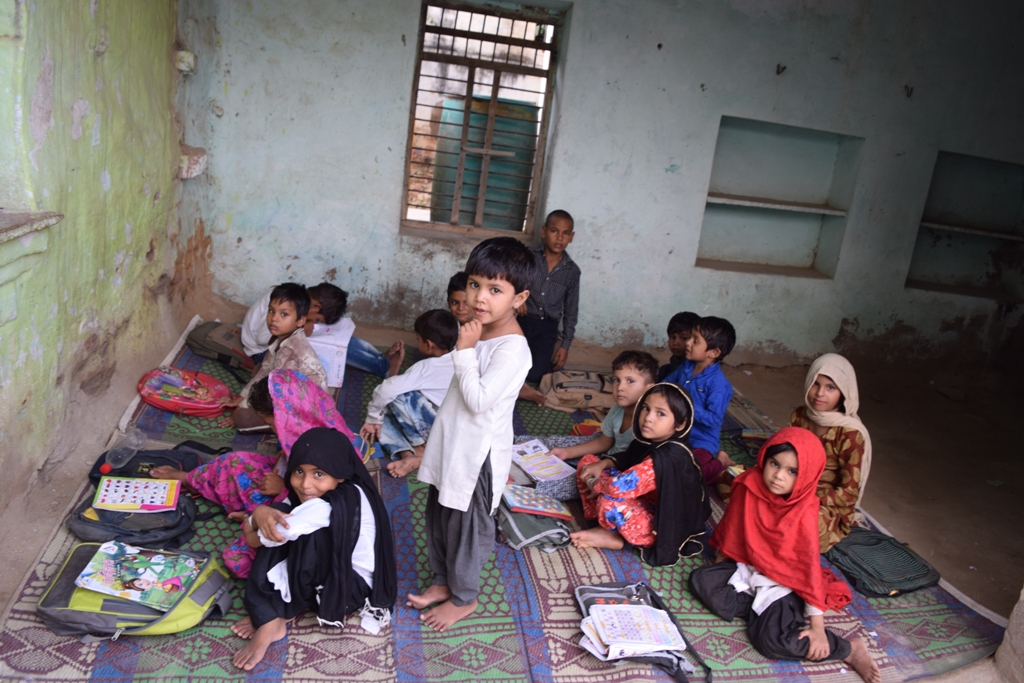 इकरा लर्निंग सेंटर में पढ़ते हुये मेवाती बच्चे[/caption]