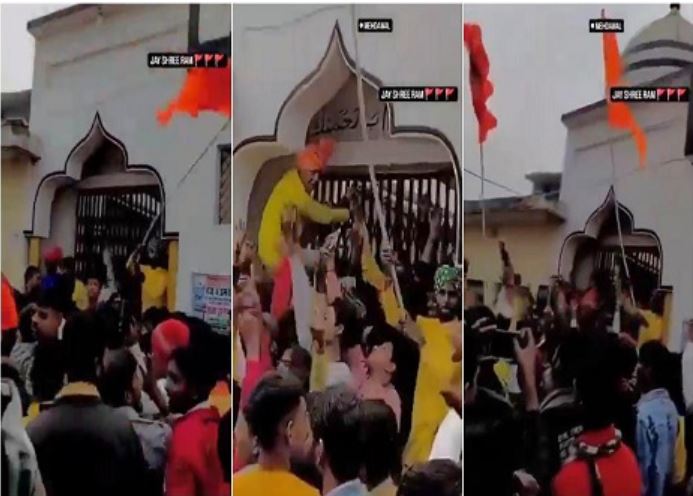 इंडियन एक्सप्रेस के मुताबिक, उत्तर प्रदेश के आगरा में, दक्षिणपंथी कार्यकर्ताओं द्वारा आयोजित एक शोभा यात्रा में लगभग 1000 से 1500 लोग लाठी-डंडों से लैस होकर 22 जनवरी को मुगलकालीन मस्जिद में घुस गए और ऐतिहासिक मस्जिद पर भगवा झंडा फहरा दिया। लोगों ने कथित तौर पर धार्मिक नारे लगाए और मस्जिद के भीतर मौजूद लोगों को धमकियां भी दीं। द हिंदू के अनुसार, भारतीय दंड संहिता की धारा 147 (दंगा), 148 (दंगा, घातक हथियार से लैस), 452 (चोट या हमले की तैयारी के बाद अतिक्रमण), और 505 (2) (सार्वजनिक उत्पात के लिए उकसाने वाले बयान) का इस्तेमाल करते हुए एफआईआर दर्ज की गई है। स्क्रॉल के अनुसार, मस्जिद, जो 1677 की है, एक स्मारक है जो भारतीय पुरातत्व सर्वेक्षण के संरक्षण में आती है।