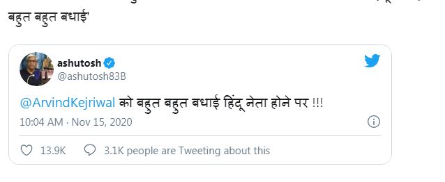 'हिंदू नेता बनने' पर अरविंद केजरीवाल के पूर्व साथी पत्रकार आशुतोष का तंज कहा , बधाई हो