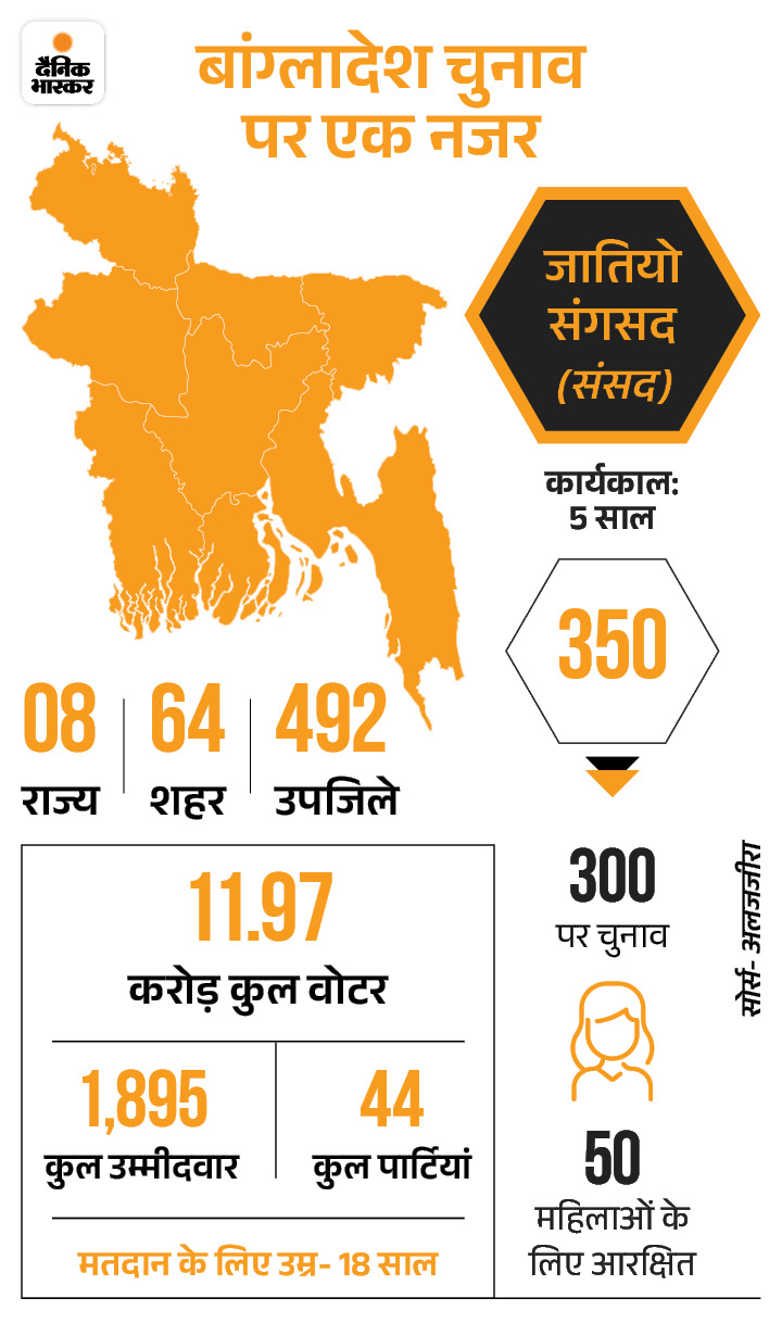 बांग्लादेश में आम चुनाव, वोटिंग खत्म, काउंटिंग शुरू:महज 27% मतदान हुआ; भारत के नॉर्थ-ईस्ट राज्यों की सुरक्षा के लिए बांग्लादेश अहम