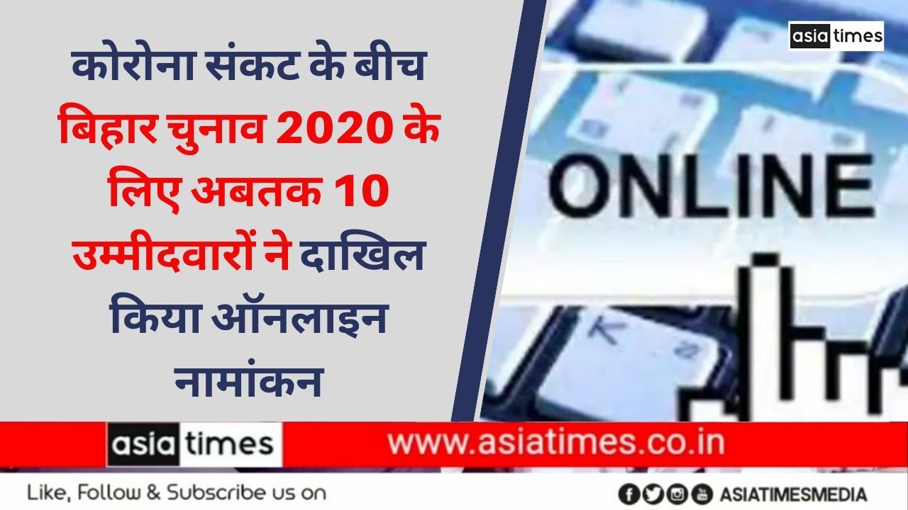 कोरोना संकट के बीच बिहार विधानसभा चुनाव को लेकर अबतक दस उम्मीदवारों ने ऑनलाइन नामांकन पत्र दाखिल किया है। इन सभी नामांकन पत्रों के साथ ही जमानत राशि भी ऑनलाइन ही जमा करायी है। इनमें से दो ने निर्वाची पदाधिकारी के समक्ष नामांकन पत्र की हार्ड कॉपी भी जमा कर दी है।
