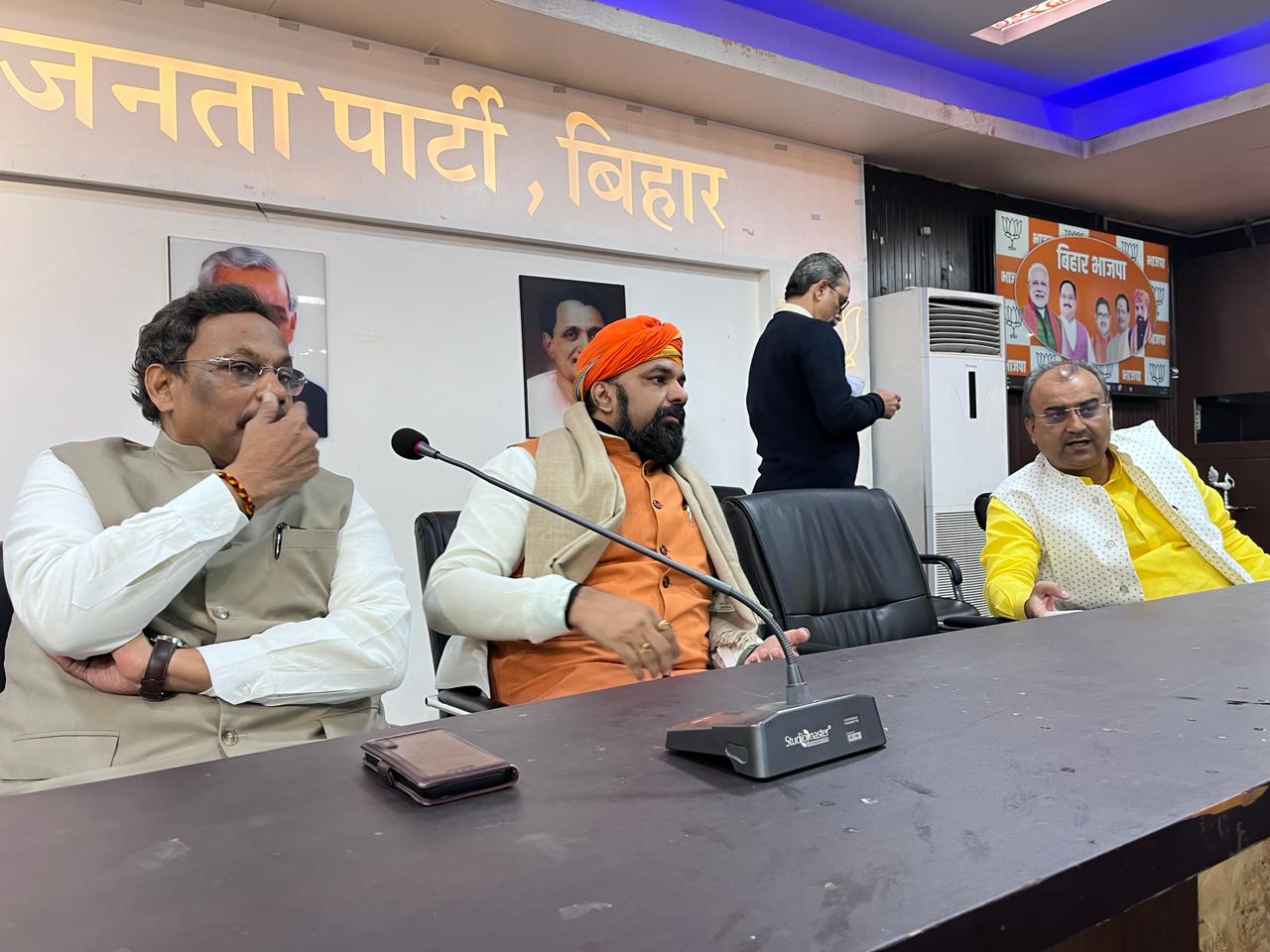 बिहार भाजपा के प्रदेश अध्यक्ष सम्राट चौधरी पार्टी दफ्तर पहुंचे, लेकिन कुछ भी नहीं बोले।
