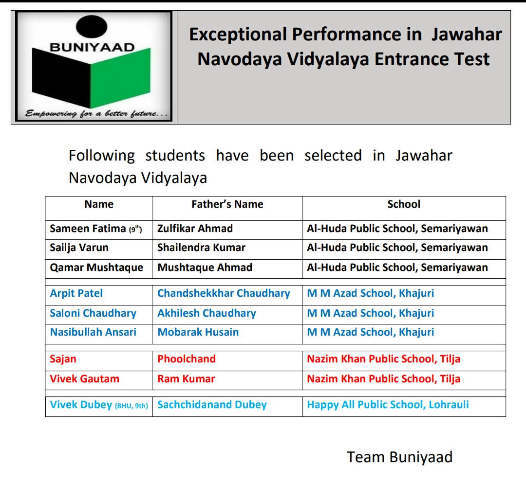 बुनियाद फाउंडेशन एक बार फिर सुर्ख़ियों में ; 9 बच्चों को नवोदय विद्यालय के दाखिला एग्जाम में मिली कामयाबी