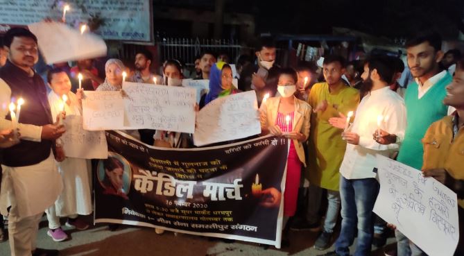 समस्तीपुर जिले के दलसिंहसराय में गोली कांड एवं गुलनाज हत्याकांड के खिलाफ आइसा ने निकाला कैंडलमार्च