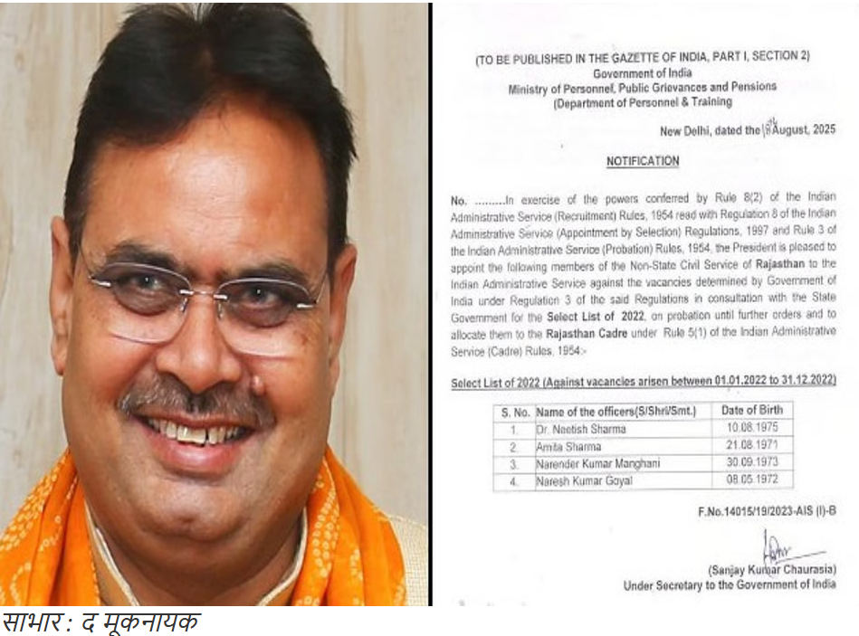 केंद्र सरकार द्वारा 8 अगस्त को जारी एक अधिसूचना में इन चार अधिकारियों की राजस्थान कैडर में नियुक्ति की पुष्टि की गई है। यह चयन 2022 की सिलेक्ट लिस्ट के तहत किया गया था, जिसका उद्देश्य 1 जनवरी 2022 से 31 दिसंबर 2022 के बीच हुई रिक्तियों को भरना था। हालांकि, अब इस चयन प्रक्रिया की निष्पक्षता पर गंभीर सवाल उठाए जा रहे हैं।