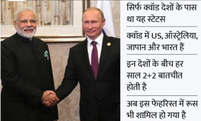 पुतिन की भारत यात्रा:भारत और रूस के बीच 6 सेक्टर्स में समझौते संभव, अमेरिका की भी रूसी राष्ट्रपति की विजिट पर नजर 06, Dec, 2021