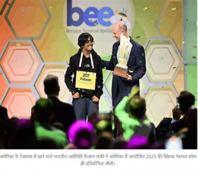 13 साल के भारतीय-अमेरिकी फैजान ने जीती स्पेल बी प्रतियोगिता:भारतीय मूल का दबदबा बरकरार, लगातार चौथी बार बने चैम्पियन 31, May, 2025