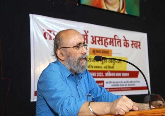 इंदौर। देश में पत्रकारिता की स्थिति जितनी आज खराब है, उतनी आपातकाल के दौर में भी नहीं थी। पर्यावरण के नजरिए से ही नहीं वैचारिक स्थिति में भी देश की राजधानी प्रदूषण का शिकार है। सरकारी एजेंसियों को असहमति के स्वर दबाने के लिए हथियार की तरह इस्तेमाल किया जा रहा है। पत्रकार सत्ता संस्थानों से सवाल पूछना ही भूल गए हैं। देश में 60 करोड़ से अधिक सोशल मीडिया यूजर हैं, लेकिन उनके पास किसी पोस्ट की सच्चाई जानने या परखने का कोई जरिया नहीं है। जिसके कारण ’व्हाट्सएप यूनिवर्सिटी’ देश के जनमानस को प्रभावित कर रही है। ये बातें वरिष्ठ पत्रकार, लेखक, डॉक्यूमेंट्री फिल्म निर्माता तथा शिक्षक श्री परंजय गुहा ठाकुरता ने कहीं। वे स्टेट प्रेस क्लब, प्रगतिशील लेखक संघ, भारतीय जन नाट्य संघ (इप्टा), महिला फेडरेशन तथा मेहनतकश द्वारा आयोजित कार्यक्रम में बोल रहे थे।