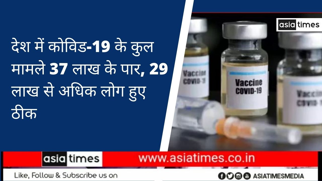 देश में कोविड-19 के कुल मामले 37 लाख के पार, 29 लाख से अधिक लोग हुए ठीक