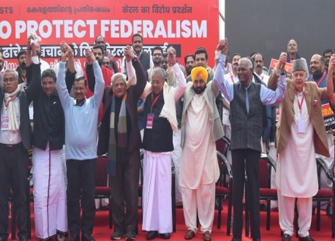 8 फरवरी (गुरुवार) को जंतर मंतर पर केरल सरकार द्वारा आयोजित आज का विरोध प्रदर्शन केंद्र द्वारा संघवाद पर हमलों, विशेष रूप से संसाधनों के हस्तांतरण में विसंगतियों पर था, जो विपक्षी राज्यों की सभा में बदल गया।