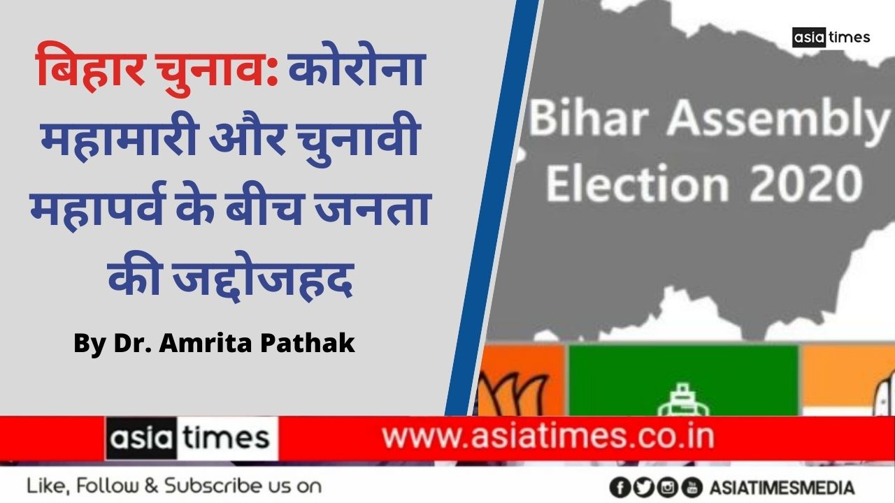 सदी की सबसे बड़ी महामारी से जूझता देश और दुनिया से बिहार भी अछुता नहीं है कोरोना महामारी की वजह से देश भर से पलायन कर युवा और मजदूर बिहार में अपने घर वापस लौटे हैं जिसकी वजह से उन्हें कई परेशानियों का सामना करना पड़ा यहाँ तक कि कई लोगों ने पलायन के दौरान अपनी जान तक गवां दी ऐसे चुनौती भरे माहौल में बिहार का चुनाव हो रहा है जहाँ जनता का वर्तमान राजनीतिक दलों के रवैये की वजह से उनपर भरोशा कर पाना मुश्किल हो सकता है। एक तरफ क्षेत्रीय और जातिगत राजनीति हावी है तो दूसरी तरफ ‘नए भारत’ का सपना दिखाने वाले भारत के प्रधानमंत्री के नाम पर गठबंधन को जीत दिलाने का प्रयास जारी है। दीगर बात यह है कि जब कार्यों के मूल्यांकन का सवाल सामने आएगा तो राज्य और केंद्र से जुड़े तमाम आलमबरदार उसके घेरे में होंगे।