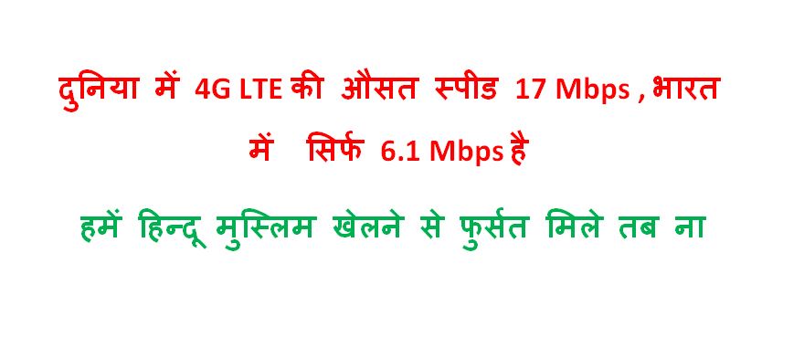 दैनिक भास्कर की रिपोर्ट के मुताबिक ग्लोबल स्पीड के मुकाबले भारत की स्पीड एक तिहाई कम :ओपन सिग्नल ने अपनी रिपोर्ट में कहा है कि भारत की 4G स्पीड ग्लोबल स्पीड के एवरेज (17 Mbps) का एक तिहाई कम है। रिपोर्ट के मुताबिक, अमेरिका में 4G डाउनलोडिंग स्पीड 16.31 Mbps और ब्रिटेन में 23.11 Mbps है। जबकि जापान में 25.39 Mbps की 4G स्पीड मिलती है।