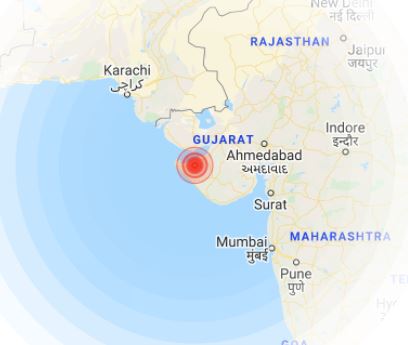 एजेंसी के अनुसार, भूकंप का केंद्र Dwarka, Gujarat, India से 80 किलोमीटर पूर्व (E) में था. भूकंप भारतीय समयानुसार 7:13 PM बजे सतह से 10 किलोमीटर की गहराई में आया.