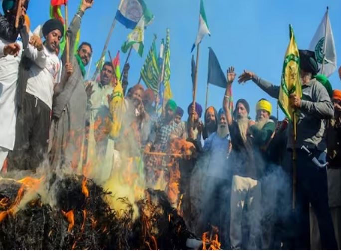 आक्रोशित किसानों ने मोदी, शाह, खट्टर का पुतला फूंक मनाया काला दिवस, दिल्ली कूच 29 तक टला