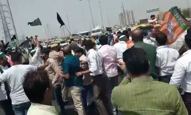 गाजीपुर बॉर्डर पर हंगामा, बीजेपी कार्यकर्ताओं का आरोप, 'किसानों ने गाड़ियों में तोड़फोड़ की'