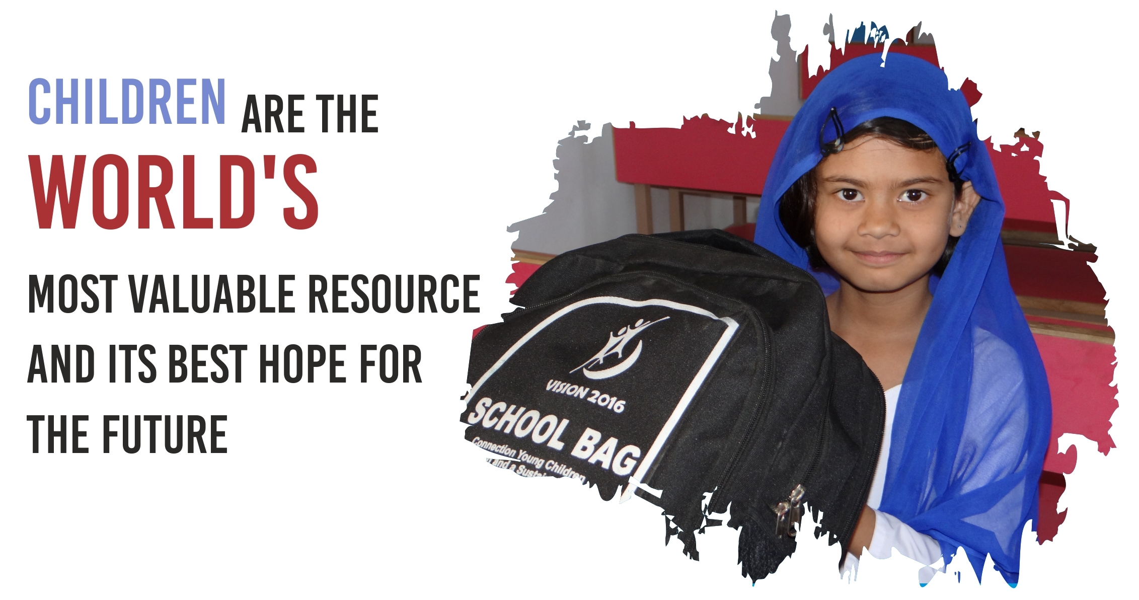 विज़न 2026 के तहत चलने वाले स्कूल बैग प्रोजेक्ट के अंतर्गत इन बच्चों को स्कूल बैग दिया जाता है जिसमे एक साल की किताबें और पढ़ाई के लिए हर जरूरी सामान मुहैया करवाया जाता है ताकि इन बच्चों को और इनके मां बाप को प्रेरित किया जाए के वो अपनी अहमियत को पहचाने और देश की तरक्की में भागीदार बन सके।इस देश के हर दर्दमंद शहरी से यही उम्मीद की जाती है के वो तन्हा अगर इन बच्चों की मदद नहीं कर सकता तो ह्यूमन वेलफेयर फाउंडेशन (VISION 2026) की इस मुहिम "स्कूल बैग प्रोजेक्ट 2018-19" का हिस्सा बने और अपनी दुआओं के साथ इन बच्चों की खुशियों के भागीदार बने।