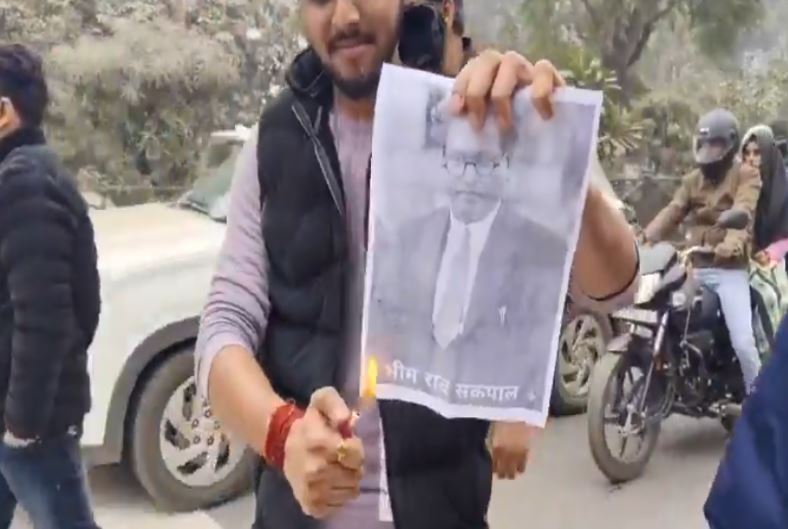 अंबेडकरवादी समूह फोटो जलाने की घटना को इस “मनुवादी” (जातिवादी) प्रतिक्रिया का सीधा विस्तार मानते हैं और सोशल मीडिया पोस्ट में इसे संवैधानिक मूल्यों और दलित गरिमा पर हमला बताया जा रहा है।