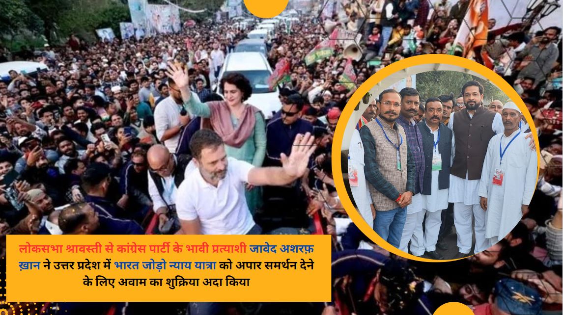 लोकसभा श्रावस्ती से कांग्रेस पार्टी के भावी प्रत्याशी जावेद अशरफ़ ख़ान ने उत्तर प्रदेश में भारत जोड़ो न्याय यात्रा को अपार समर्थन देने के लिए अवाम का शुक्रिया अदा किया
