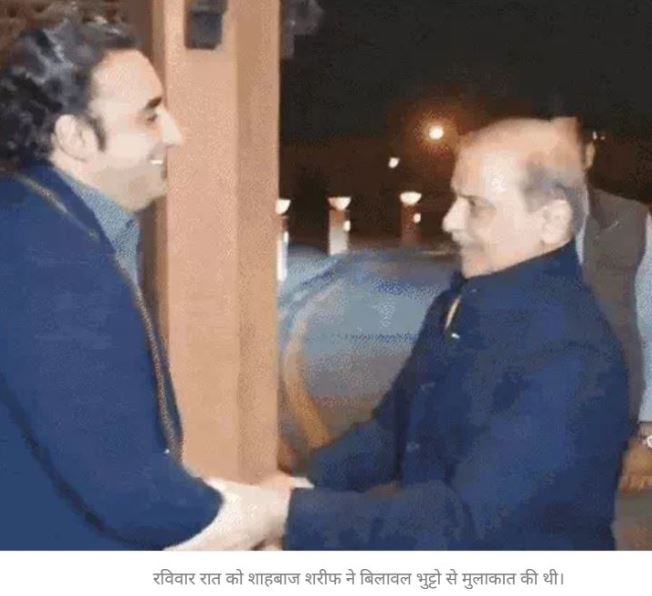 नवाज शरीफ की पार्टी PML-N के प्रेसिडेंट शाहबाज शरीफ ने रविवार रात पाकिस्तान पीपुल्स पार्टी (PPP) के नेता आसिफ अली जरदारी और उनके बेटे बिलावल से मुलाकात की। इसके बाद PPP ने कहा- सोमवार को सेंट्रल एग्जीक्यूटिव कमेटी की मीटिंग के बाद कोई फैसला करेंगे।