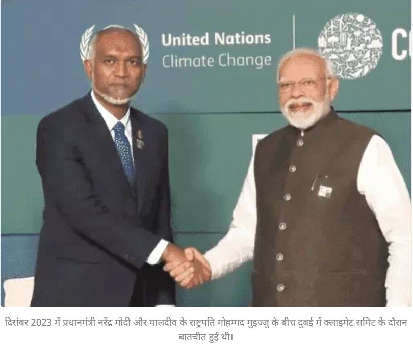 45 साल के मुइज्जु ने चुनाव में भारत समर्थक मोहम्मद सोलिह को हराया था। मुइज्जु अपनी पहली स्टेट विजिट पर चीन गए थे। इसके पहले मालदीव का हर प्रेसिडेंट पहला दौरा भारत का ही करता आया था।