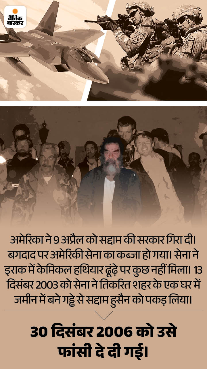 सद्दाम को फांसी के 5 साल बाद यानी 2011 तक अमेरिकी सेना इराक में रही। इसके बाद 2014 में ISIS से लड़ने के लिए वापस लौट आई। फिलहाल इराक में अमेरिका के 2500 सैनिक तैनात हैं।